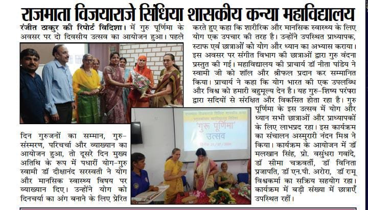Govt. Girls College, Started its journey in 1970 with the aim of Upliftment of the status of women through quality education and has since committed itself to provide education to the girls of Vidisha and nearby villages in various courses encompassing the faculties of Humanities, Commerce, Home Science and Science. Read More