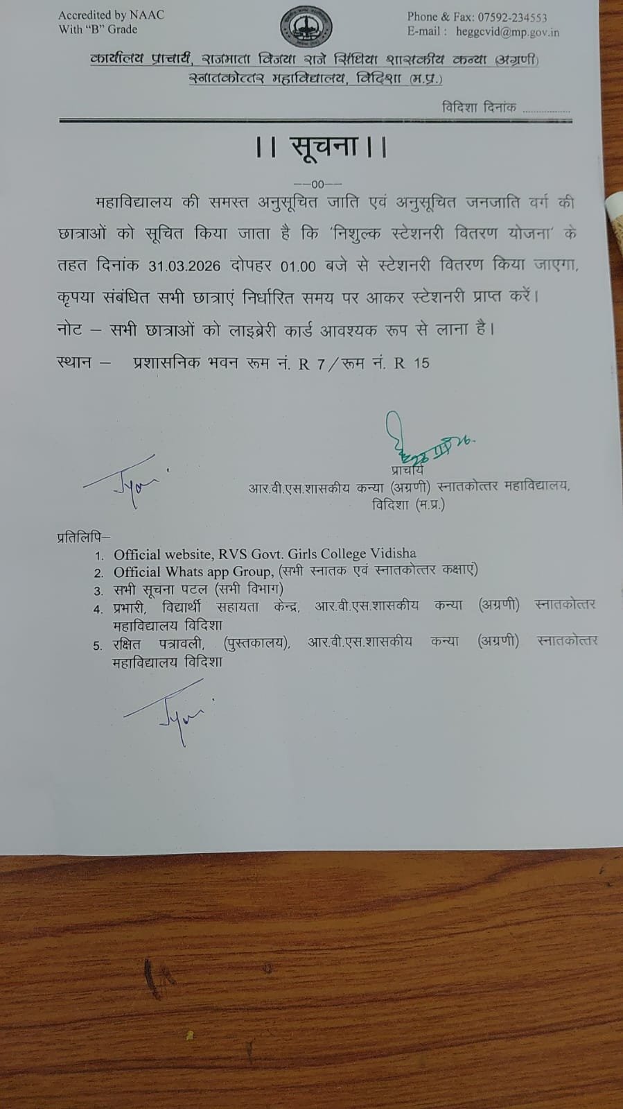 Principal of Govt Girls College Vidisha