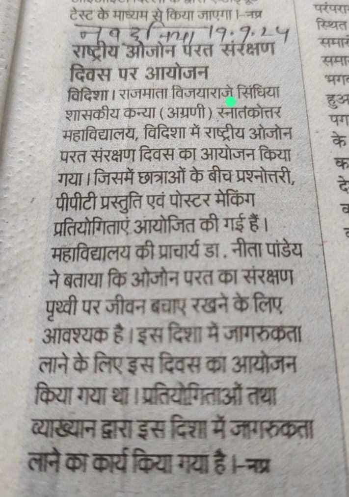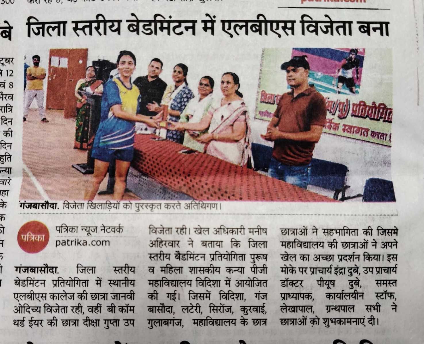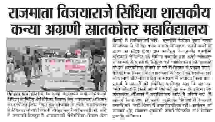 जिला स्तरीय कबड्डी प्रतियोगिता में राजमाता विजयराजे सिंधिया शासकीय कन्या स्नातकोत्तर महाविद्यालय की छात्राएं विजेता रही। 2024