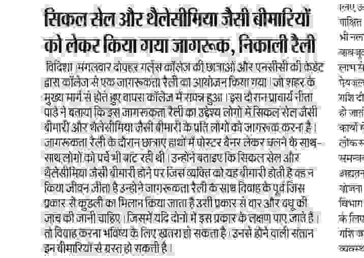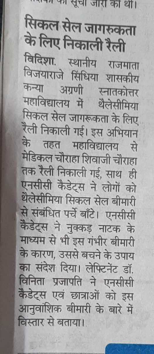 राष्ट्रीय सेवा योजना द्वारा आयोजित रक्तदान शिविर कार्यक्रम अधिकारी डॉ. ज्योति धनोतिया