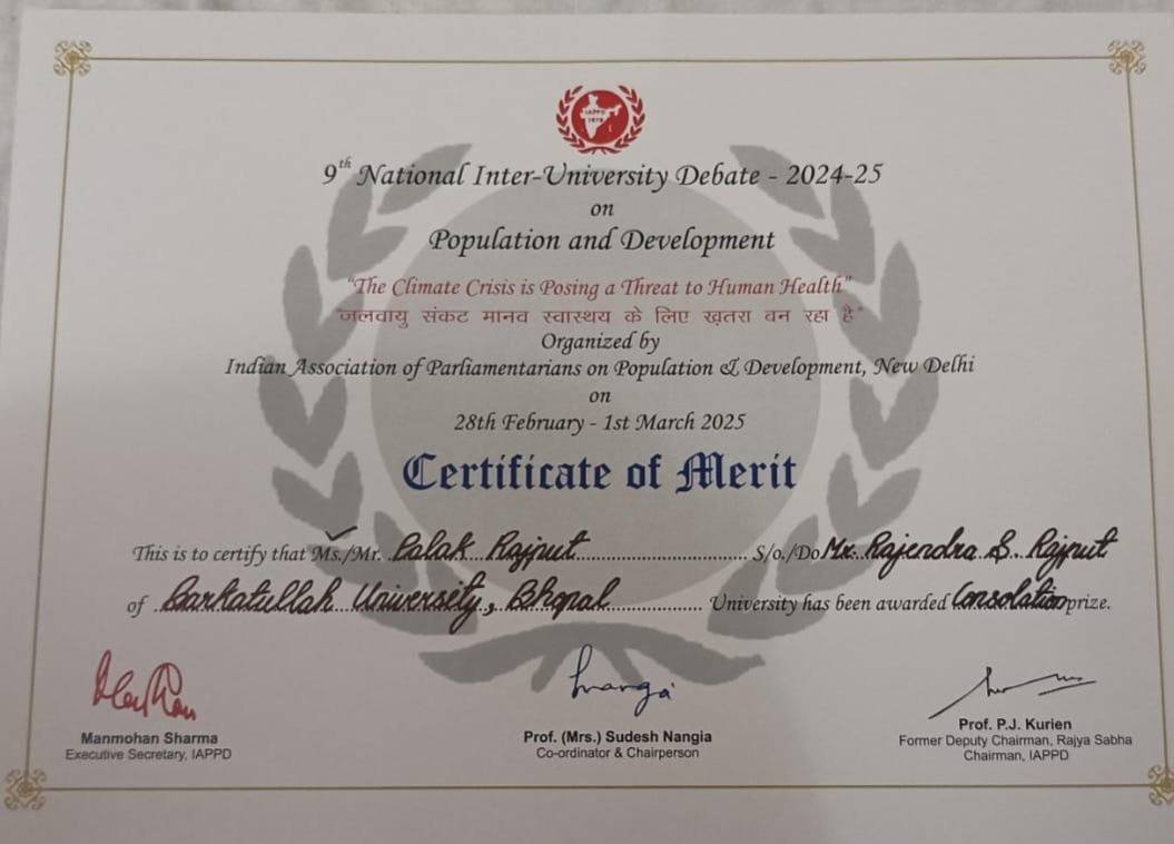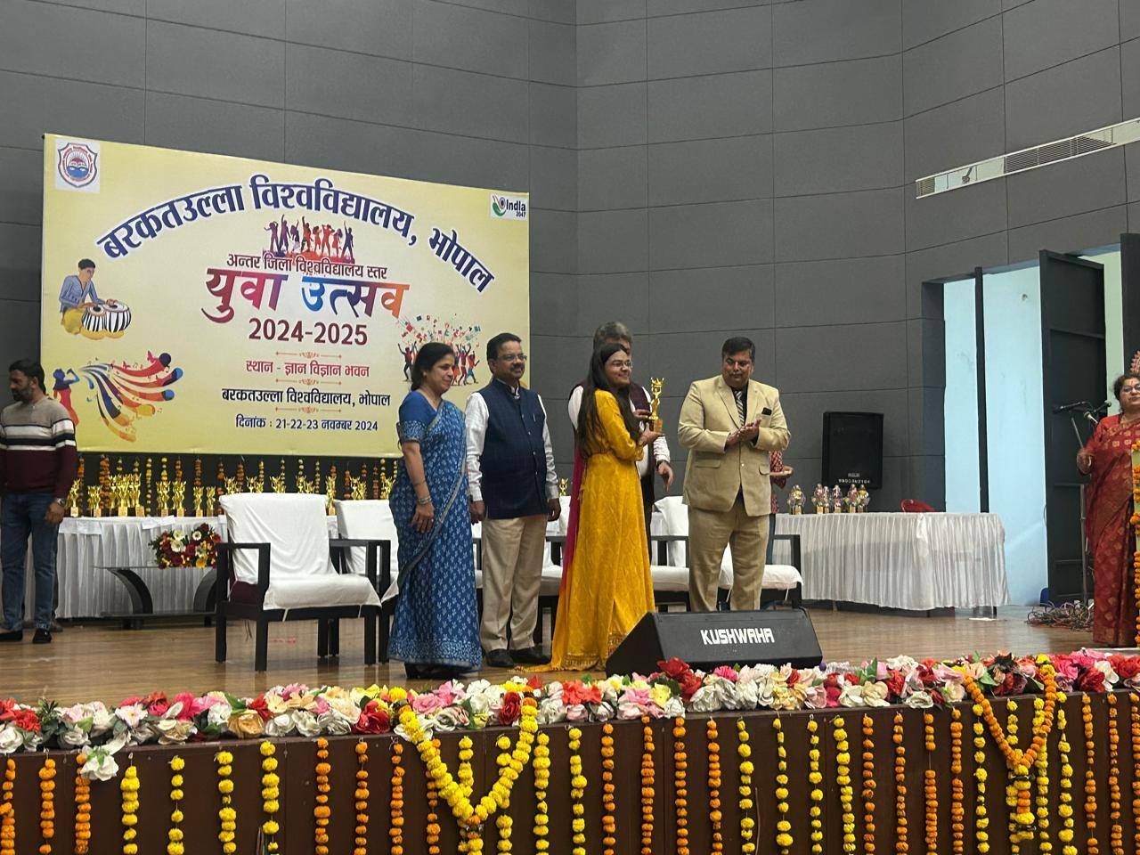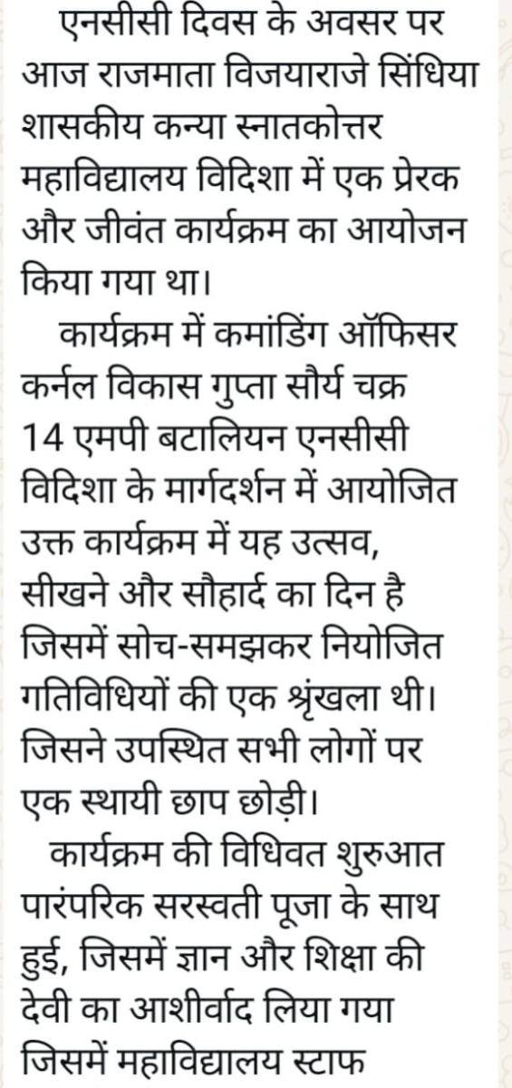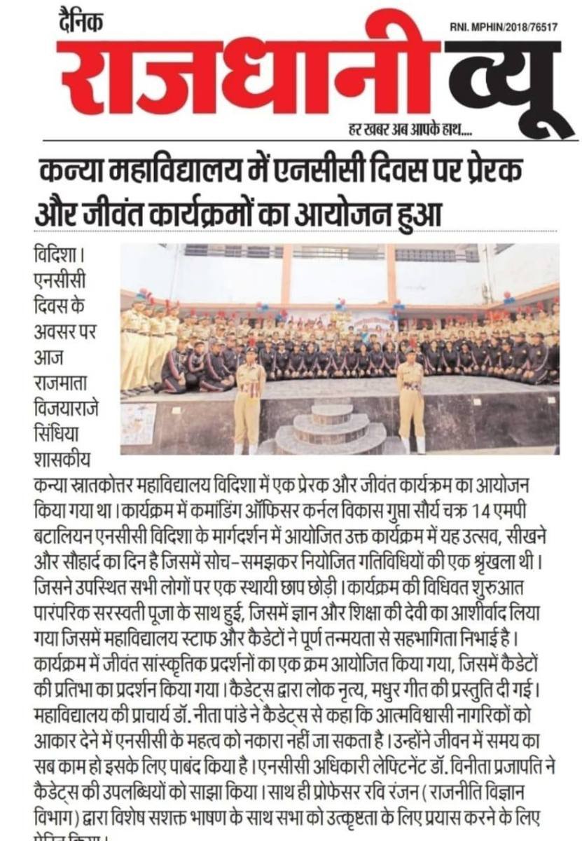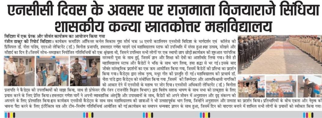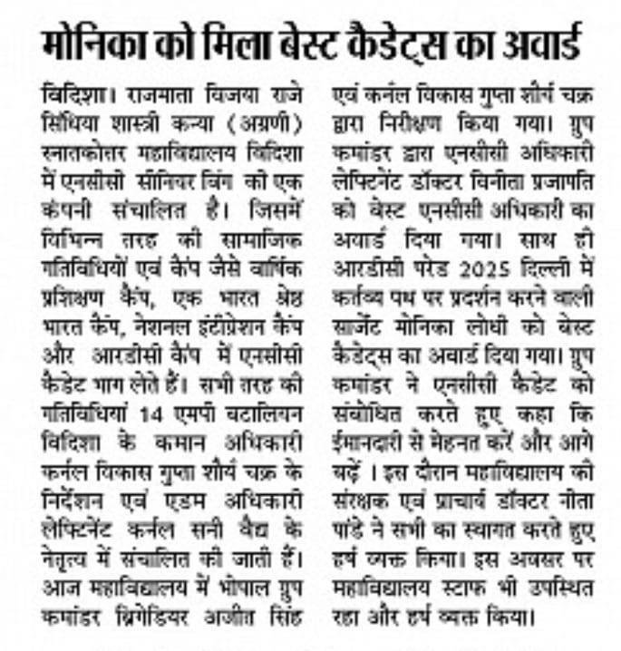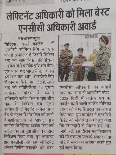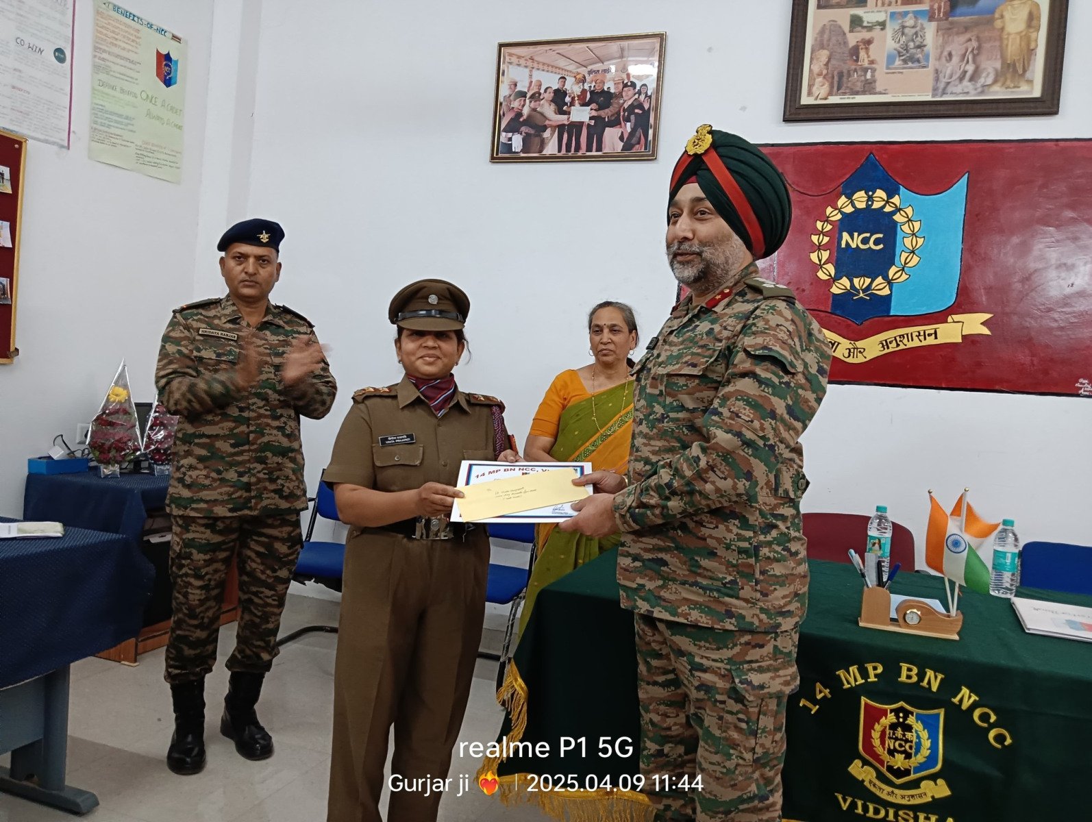 (Dr.) Vinita Prajapati was honored with the *Best Associate NCC Officer (ANO)* award by Brig. Ajit Singh, Bhopal Group Commander.